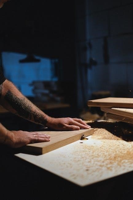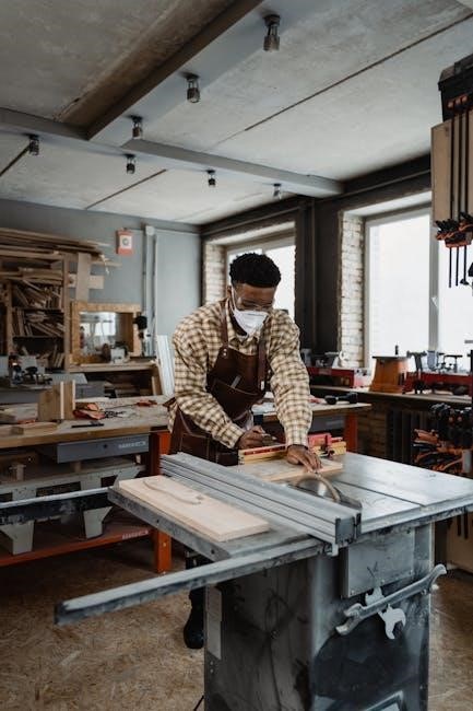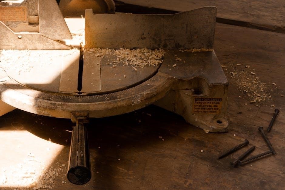 Always wear appropriate safety gear‚ including eye and ear protection. Never reach over or around the blade while it’s rotating. Follow the manual’s guidelines for safe and accurate cutting procedures.
