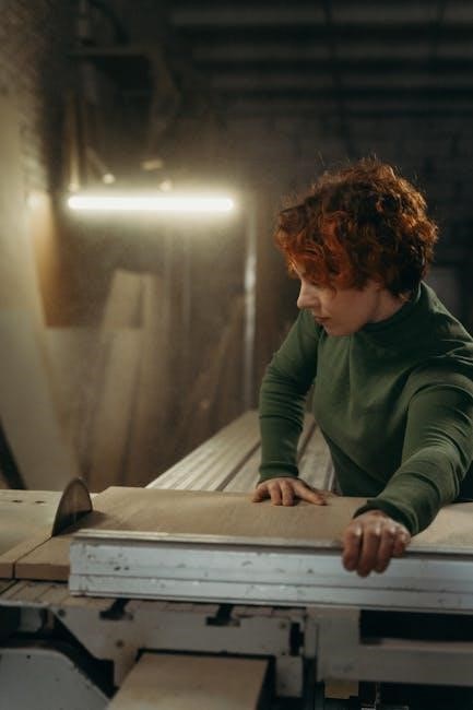 Position your workpiece firmly against the rip fence‚ ensuring it remains in contact throughout the cut. Feed the material smoothly and consistently‚ maintaining even pressure. Avoid twisting or binding the wood‚ which can lead to inaccurate cuts or kickback. Always use appropriate safety gear‚ including eye and ear protection.