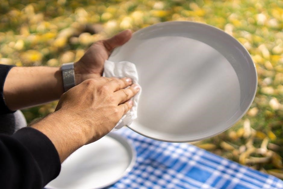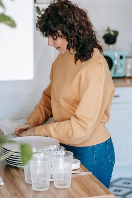 Rinse aid is equally important, minimizing water spots and improving drying. Fill the rinse aid dispenser regularly, adjusting the dosage based on water hardness. Overfilling can cause filming. The manual details the dispenser location and adjustment settings. Using the correct detergent and rinse aid ensures sparkling clean dishes and prevents residue buildup. Always follow the manufacturer’s recommendations for best performance and to protect your dishwasher.
